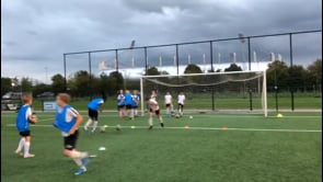 3v2 met 2 ballen en scoren op een doeltje: ook eindeloos variëren met aantal spelers, ballen en omgeving binnen de voetbaltrainingen. Tijdens het spel veranderd de situatie (van 1v1 naar 2v1 naar 3v2) erg snel waardoor het aanpassingsvermogen en ruimtelijke oriëntatievermogen getraind wordt.